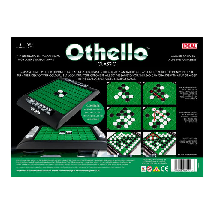 Othello takes a minute to learn and lifetime to master! It's the internationally acclaimed two player strategy game.