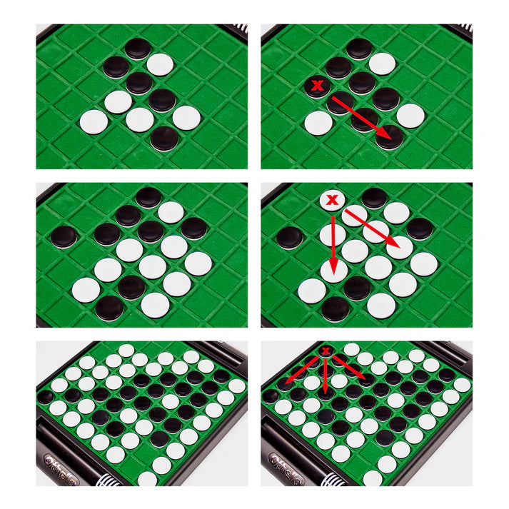 Trap and capture your opponent by placing your disks on the board. ÒSandwichÓ at least one of your opponent's pieces to turn their disk to your colourÉ.but look out, your opponent will do the same to you. The lead can change with the flip of a disk in this classic fast-paced strategy game.
