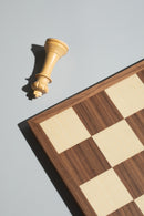 Squares are 45mm wide. World Chess logos are inlaid into the wood. The boards are produced in Spain.
