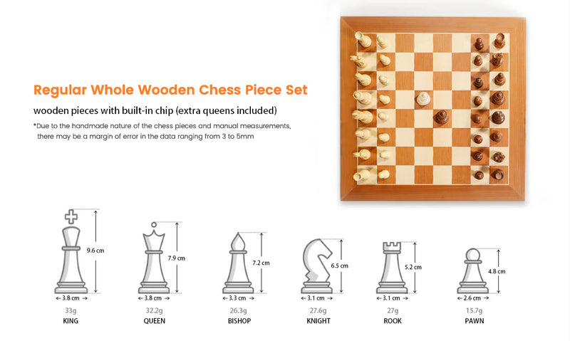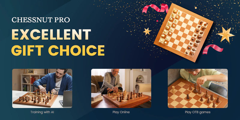 Chessnut Pro is a 55cm tournament sized board with 55mm squares. It is fully wooden, and comes standard with high quality wooden pieces. The all-wooden surface makes it more textured and elegant. And the hidden LED design also makes it looks better. Chessnut Pro is an intelligent electronic chessboard that offers a multitude of apps featuring highly intelligent and engaging A.I. with varying levels of difficulty. With this board, you can improve your chess skills by playing against challenging A.I. and analyzing your moves. Additionally, you can connect to popular online chess platforms such as Chess.com and Lichess and compete against over 50 million players on a real board, with your opponent's moves being displayed in real-time. Moreover, our apps allow you to play face-to-face games with your friends and family, which can be recorded and stored in the built-in memory for later analysis and sharing. Chessnut Pro makes for a perfect gift for anyone who loves chess, including your parents, friends, and kids.