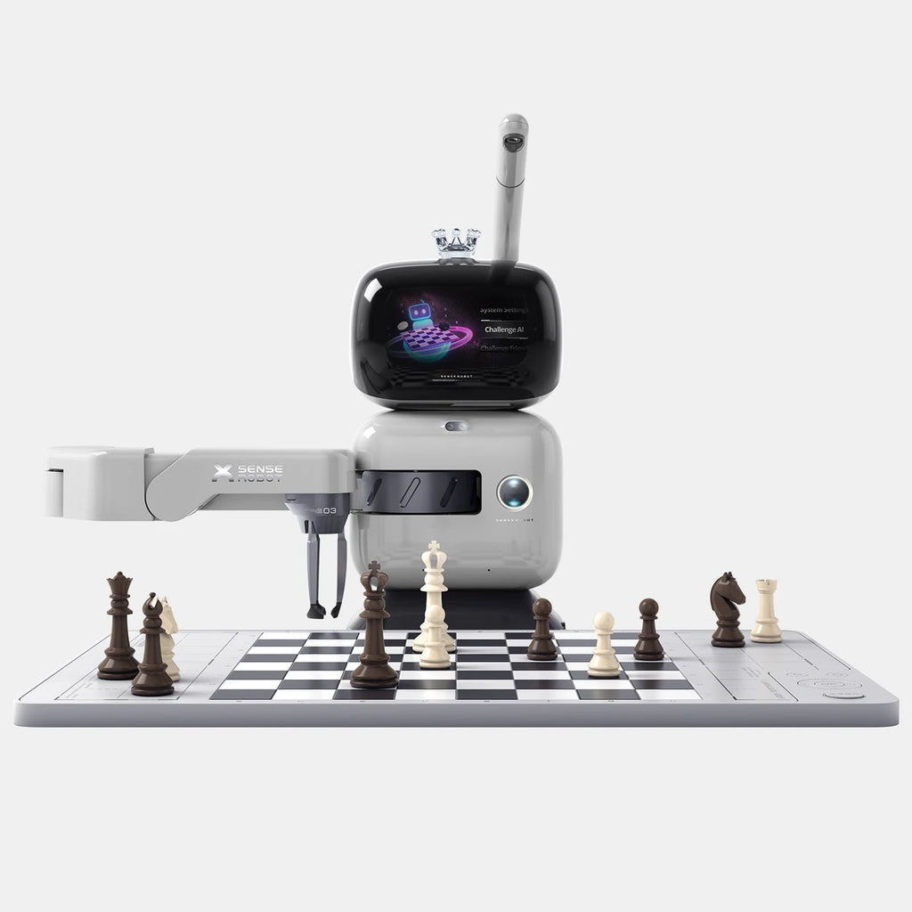 SenseRobot AI Chess Robot: a professional training system with 26 adaptive AI levels up to ELO 3200, delivering realistic gameplay that feels like facing a real opponent.