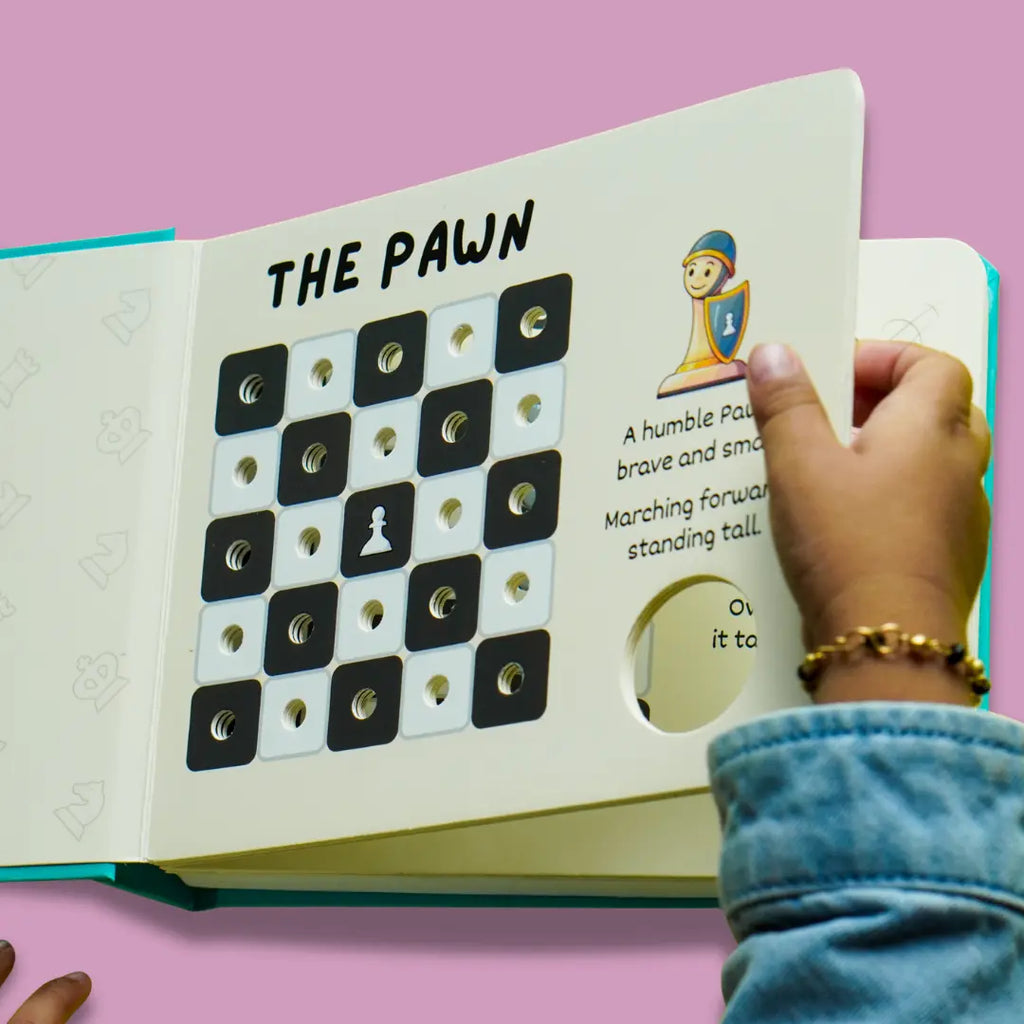 is an interactive book designed to introduce little ones to the world of chess. With an irresistible big button, engaging visuals and 24 colourful LEDs, learning chess has never been this fun!