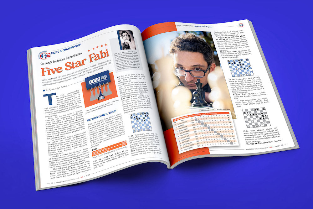GM John Burke also prepared an extensive report on the 2025 U.S. Championship, where Fabiano Caruana clinched his fifth title. Caruana had to overcome numerous challenges, but his experience, determination and willingness to take risks ultimately prevailed. His triumph resulted in yet another record-breaking performance, tying Bobby Fischer’s achievement of four consecutive U.S. Championship victories.