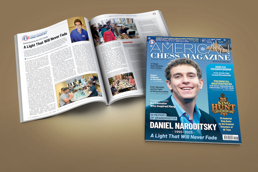 As a special feature in this issue, we present 35 immortal king hunts by some of the greatest attackers of all time. Our cover is dedicated to the suddenly deceased grandmaster Daniel Naroditsky, whose untimely passing shocked the entire chess world.